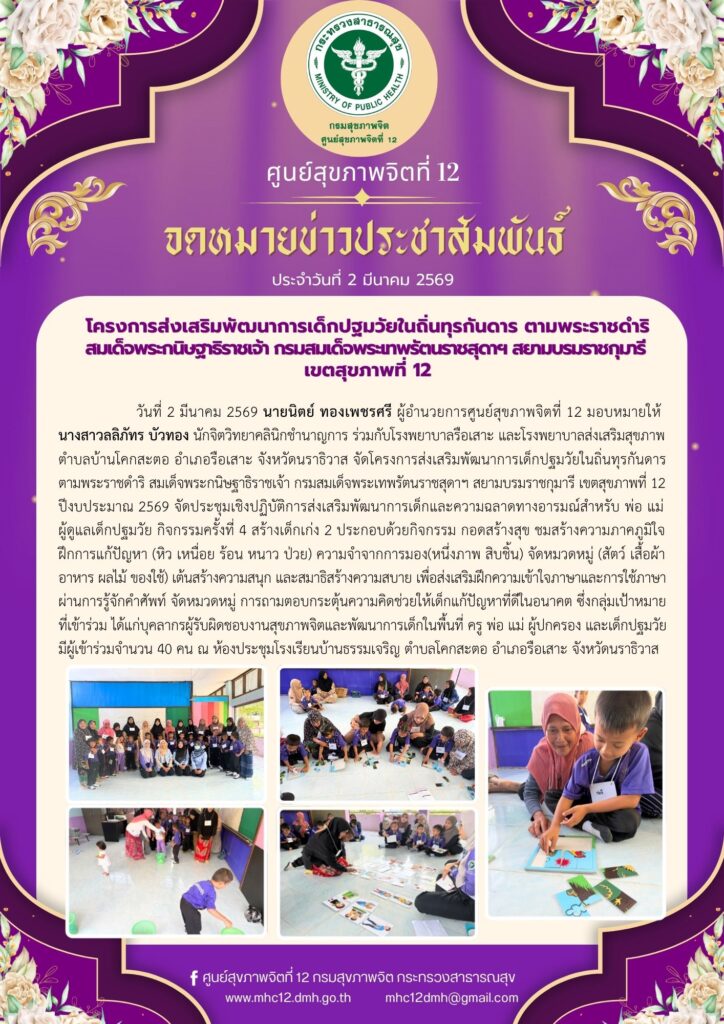 เพราะความเข้าใจคือจุดเริ่มต้นของการดูแล “เพราะความเข้าใจคือจุดเริ่มต้นของการดูแล ชวนสังเกต 5 สัญญาณเตือนที่อาจนำไปสู่ภาวะทางจิตเวชรุนแรง (SMI-V Scan) หากพบคนใกล้ชิดมีอาการเหล่านี้เพียงข้อเดียว อย่าปล่อยไว้ เพื่อความปลอดภัยของตัวเขาและสังคมครับ”5 สัญญาณที่ต้องเฝ้าระวัง ไม่หลับไม่นอน เดินไปเดินมา พูดจาคนเดียว หงุดหงิดฉุนเฉียว เที่ยวหวาดระแวง หากพบอย่างน้อย 1 ข้อ แจ้งเจ้าหน้าที่สาธารณสุข/ฝ่ายปกครอง