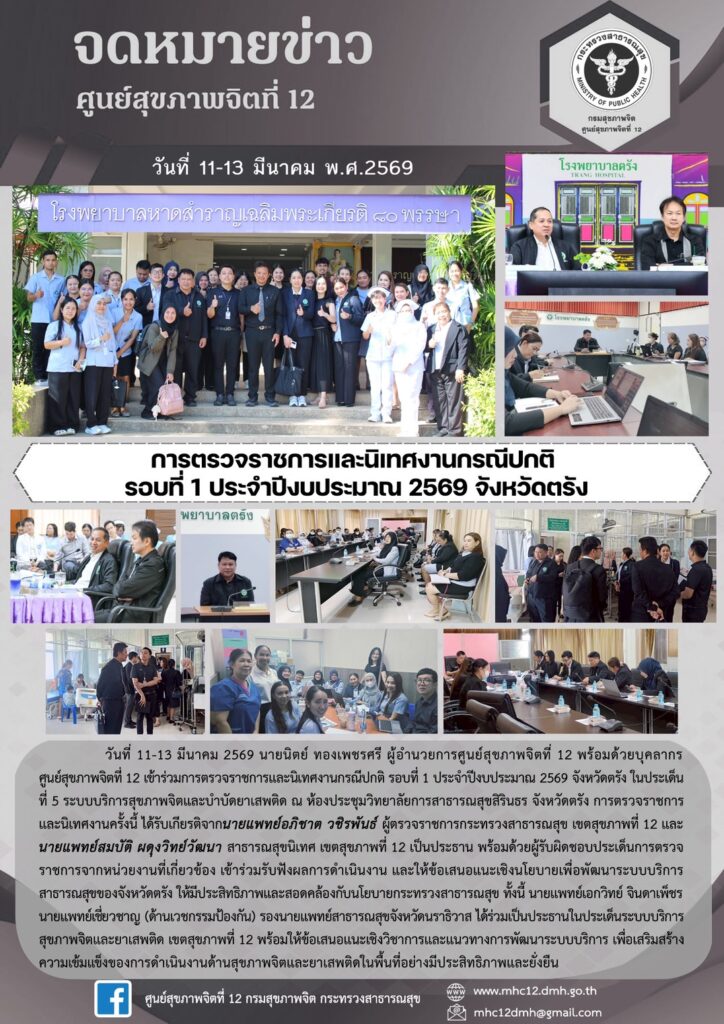 จดหมายข่าวการตรวจราชการและนิเทศงานกรณีปกติ รอบที่ 1 ประจำปีงบประมาณ 2569 จังหวัดตรัง admin / 03/13/2026