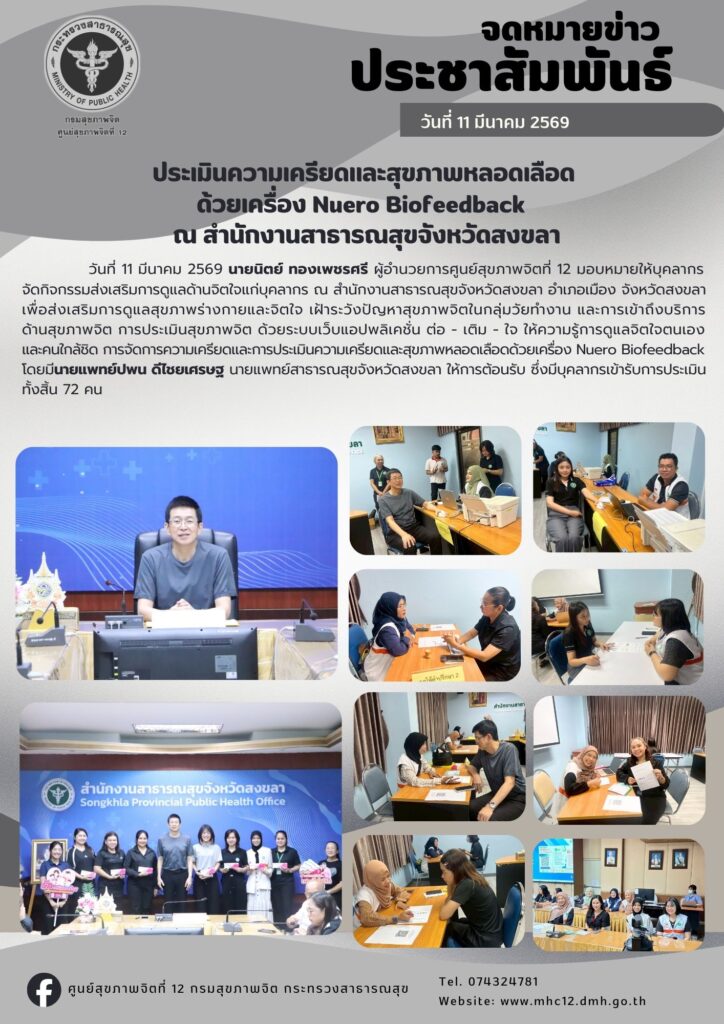 ประเมินความเครียดและสุขภาพหลอดเลือดด้วยเครื่อง Nuero Biofeedback ณ สำนักงานสาธารณสุขจังหวัดสงขลาBy admin / 03/11/2026